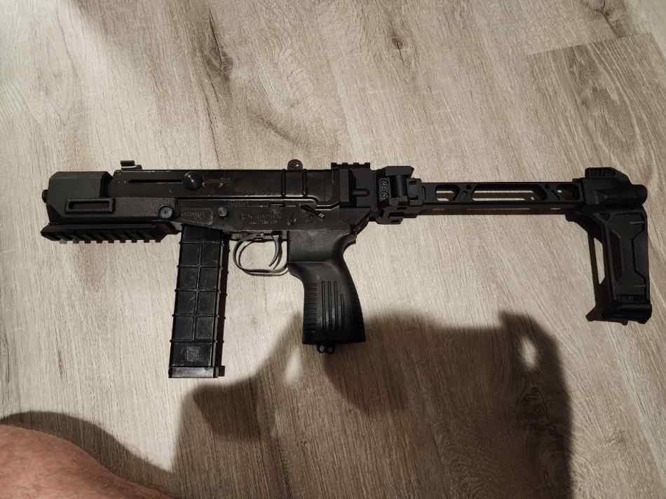 Selling my vz 61 chambered in .380 acp. Includes gun, 2 magazines, drop leg holster (not pictured), code4 defense removable vz61 modernization parts. Front rail and rear 1913 brace adapter, red dot sight, as well as strike industries dual folder brace.