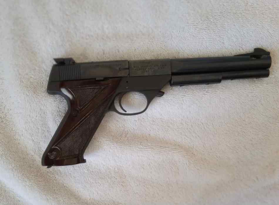 Hi-Standard Supermatic S-101 target pistol manufactured in mid 1950's in Hamden, Conn. Excellent condition. Six and three quarter inch heavy barrel, factory ported. Two factory balance weights and two magazines.